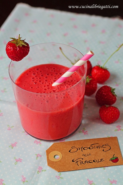 Gli smoothies sono deliziosi e fanno gola a grandi e piccini. Detto così sembra uno spot pubblicitario ma in effetti qui a casa sia io che mio figlio ne beviamo in grandi quantità. Ho la casa strapiena di fragole e questo smoothie è un modo simpatico per variare la solita merenda (fragole con chili di zucchero e panna per me, fragole con un cucchiaino di zucchero per il mio nanetto).