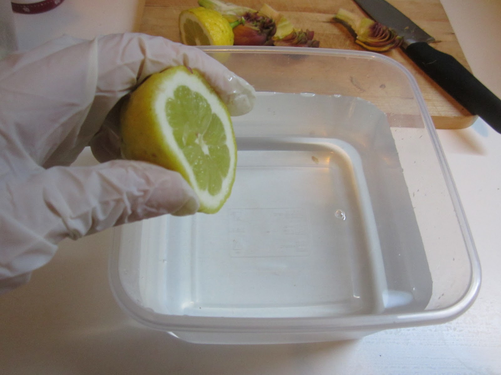 e mettetevi a bagno i carciofi per bloccarne l’ossidazione (serve per evitare che si facciano neri, nel senso letterale del termine!)