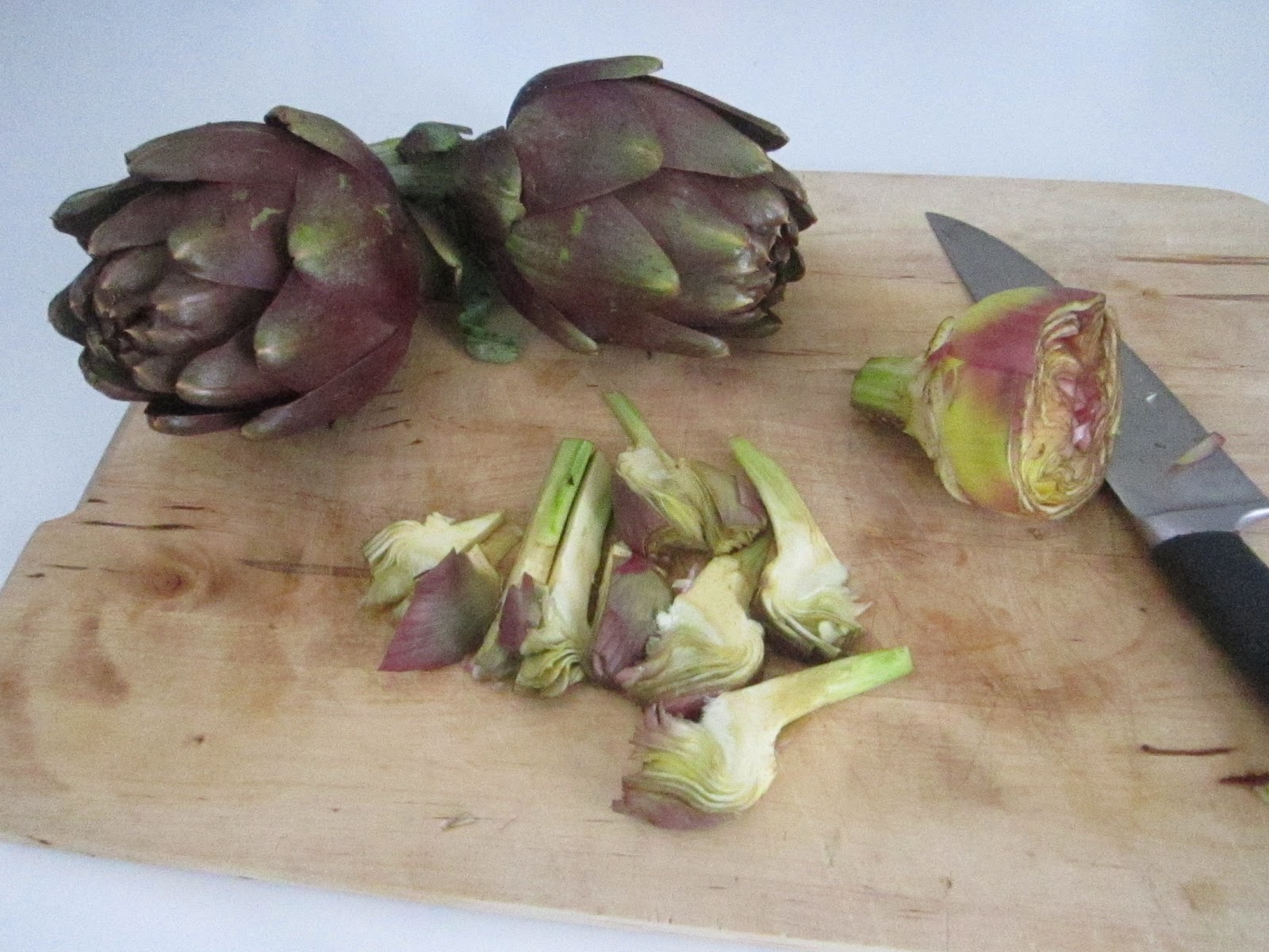 Prima di tutto private i carciofi delle foglie esterne. Dovete fermarvi quando raggiungerete quelle morbide (vedrete subito la differenza). Non vi spaventate se vi sembrerà di toglierne troppe, solitamente vanno via più della metà!