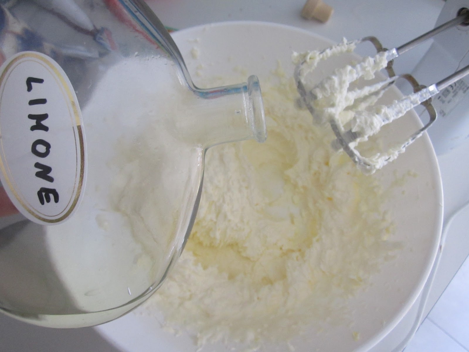 Unite il limoncello e se volete che un frosting giallo aggiungete un pochino di colorante alimentare.