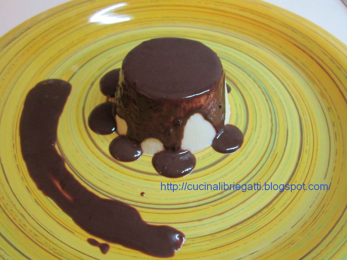 Per far staccare facilmente la panna cotta con crema al cioccolato dal suo stampino, immergetele per pochi istanti in acqua bollente! Si staccherà subito.