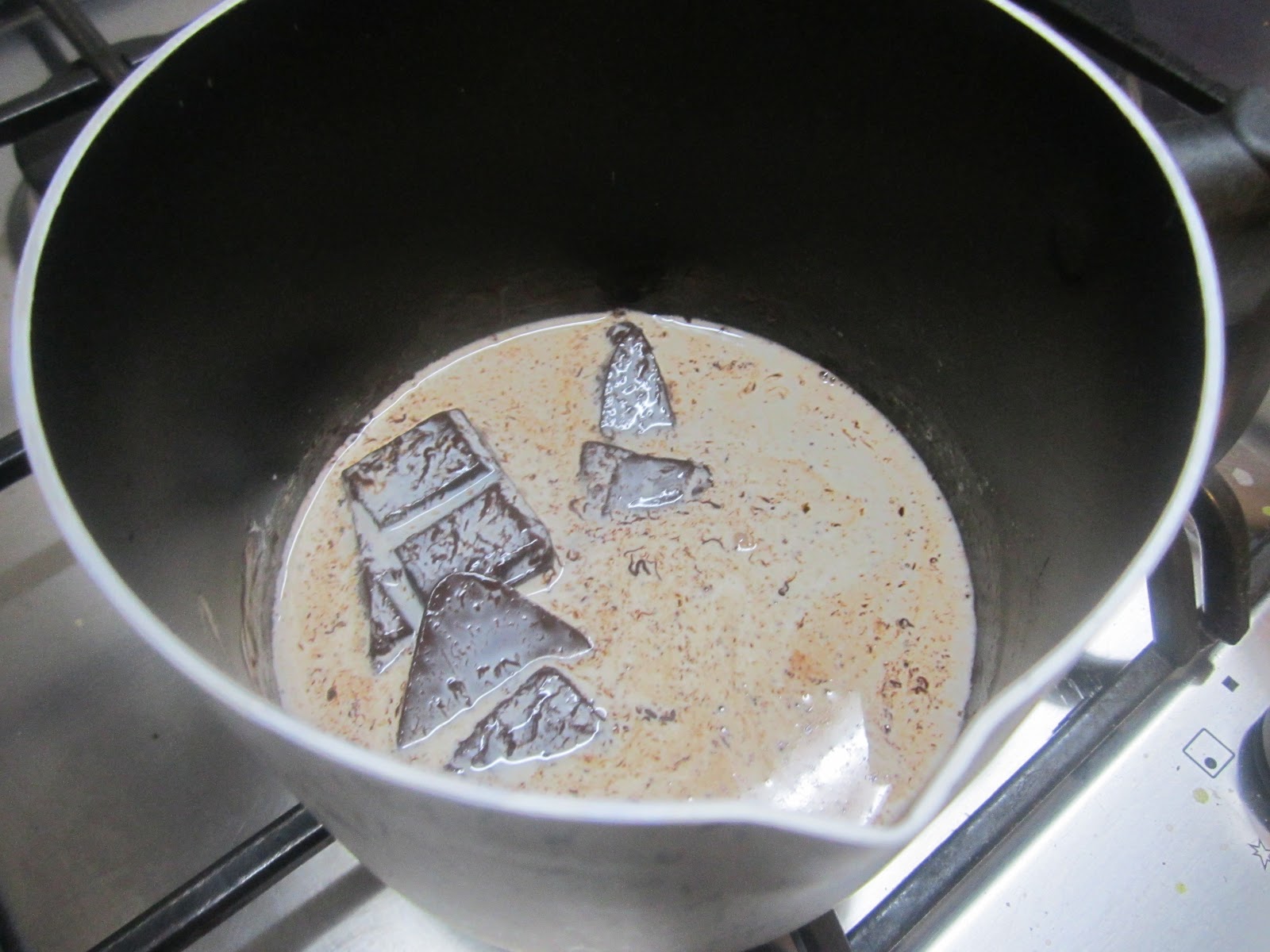Quando il plumcake si sarò completamente raffreddato preparate la glassa facendo sciogliere a fuoco dolcissimo il cioccolato con la panna.