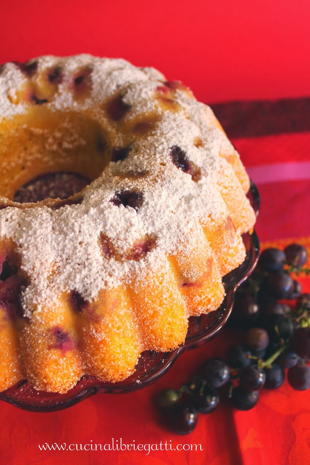 Bhe la ciambella è bellissima e l'uva fragola mi ricorda la vecchia casa dove avevamo una pergola piena piena di uva…pensare che a me nemmeno piaceva molto, l'avessi adesso farei della confettura e pure questa ciambella!!