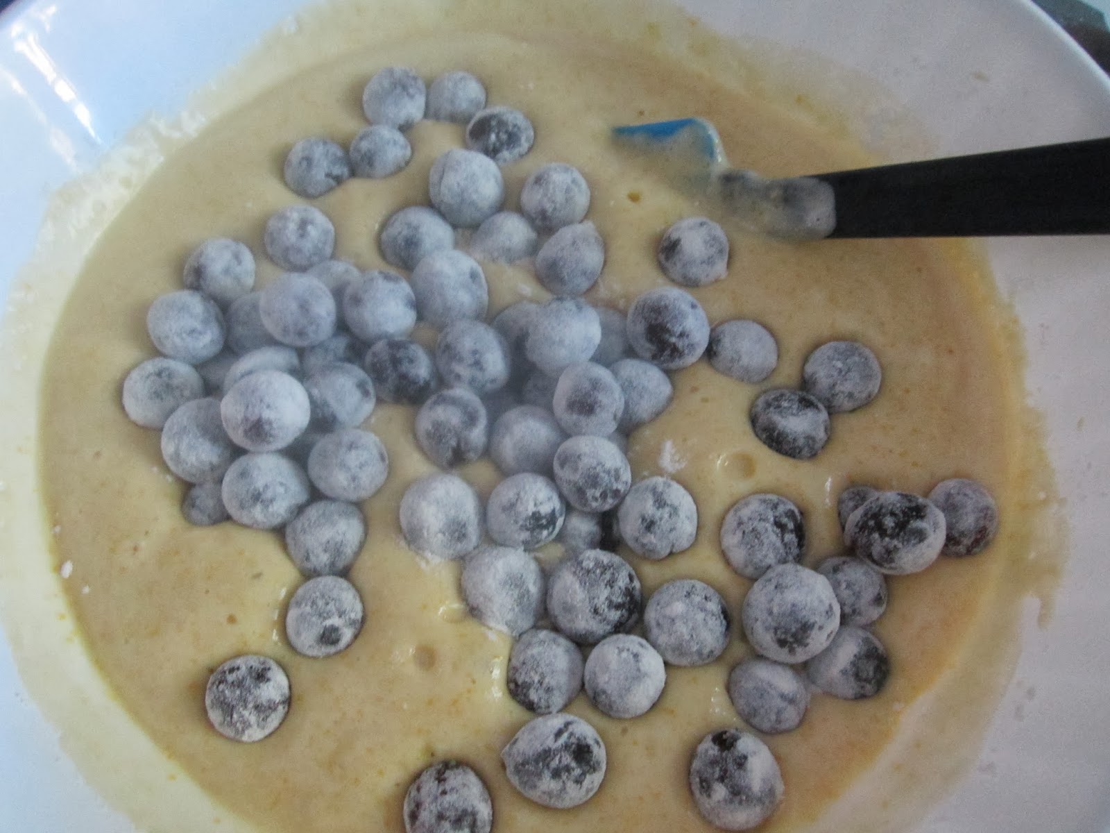 Infine unite gli acini d’uva infarinati (in maniera tale da impedire che si depositino tutti sul fondo dell’impasto in cottura).