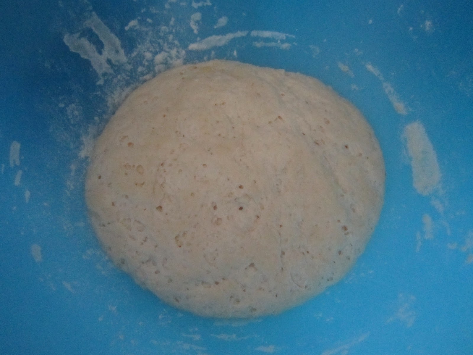 Formare una palle con l’impasto e metterlo a riposare coperto (io l’ho messo in forno spento) per almeno 12 ore.