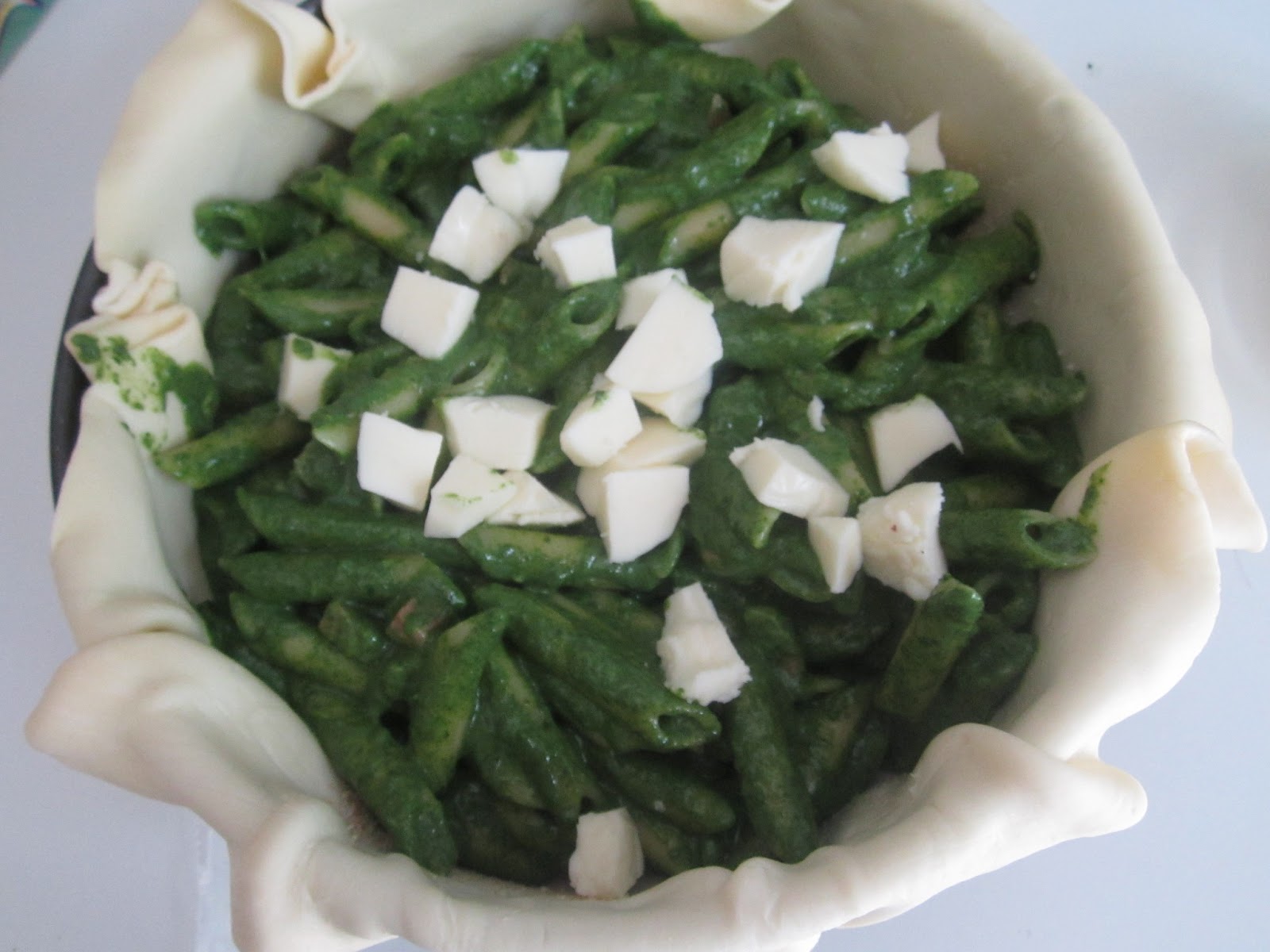 Timballo di pasta in crosta di sfoglia con besciamella agli spinaci e pancetta