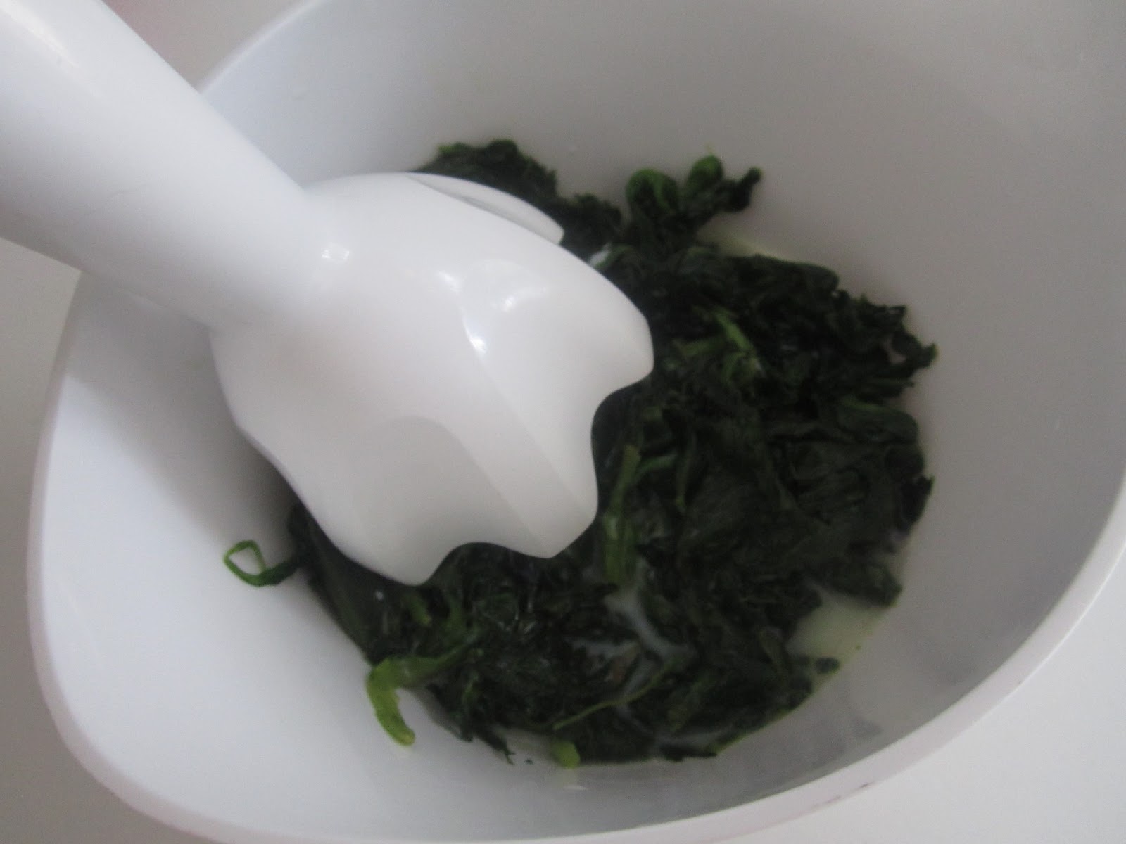Frullate gli spinaci aggiungendo un po’ di latte.