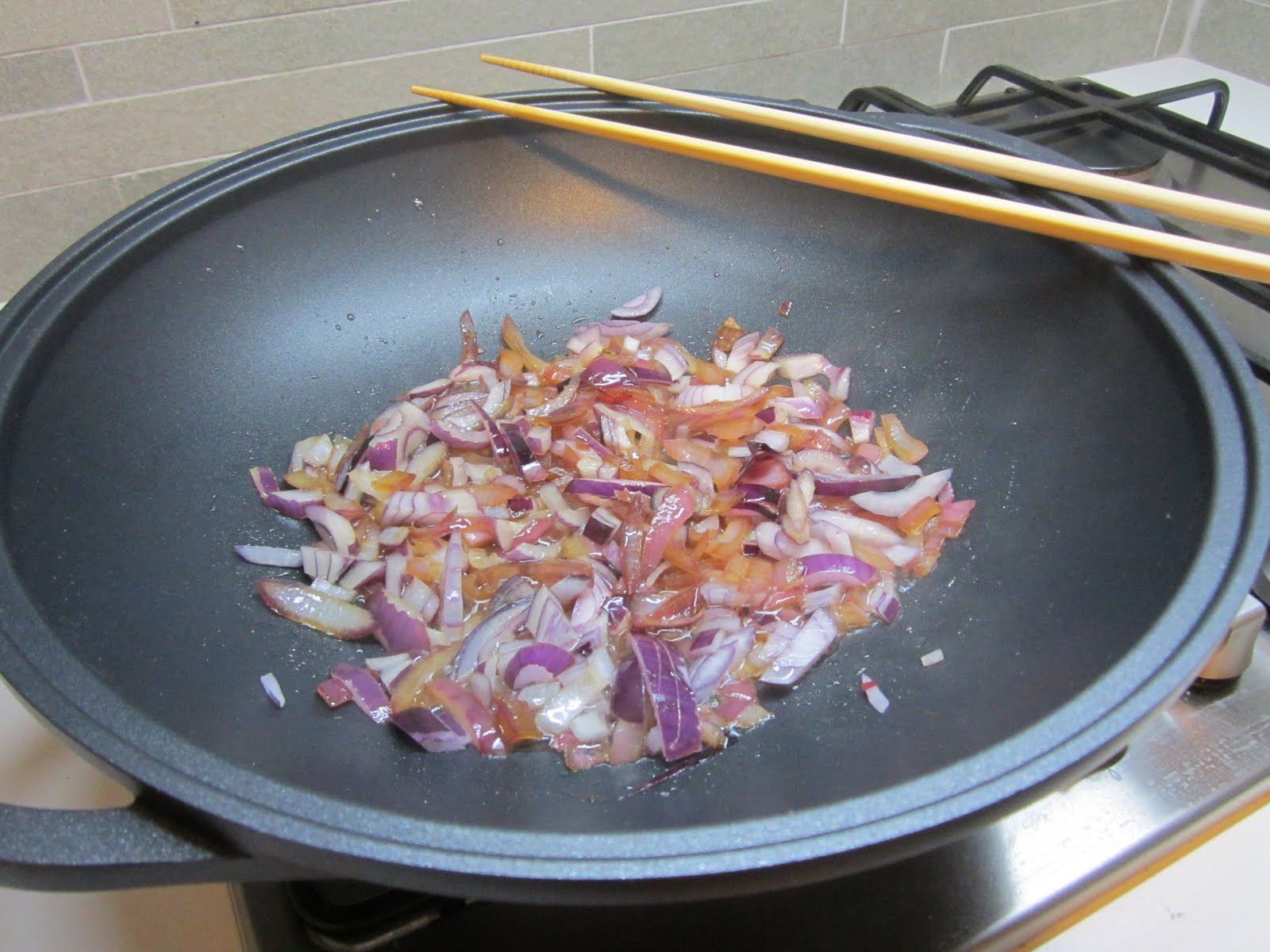 Così ecco la ricetta, italianizzata (perché ho usato olio d’oliva e non di semi), che mi ha anche permesso di utilizzare la wok regalata all’Assistente Lavapiatti dai suoi colleghi ben due inverni fa ed utilizzata una sola volta.