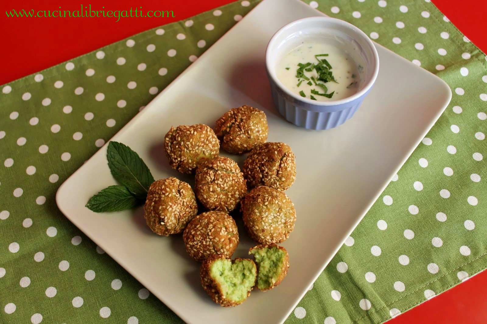 - Servite leย polpette di piselli e mentaย sia calde che fredde accompagnate dalla salsa.
