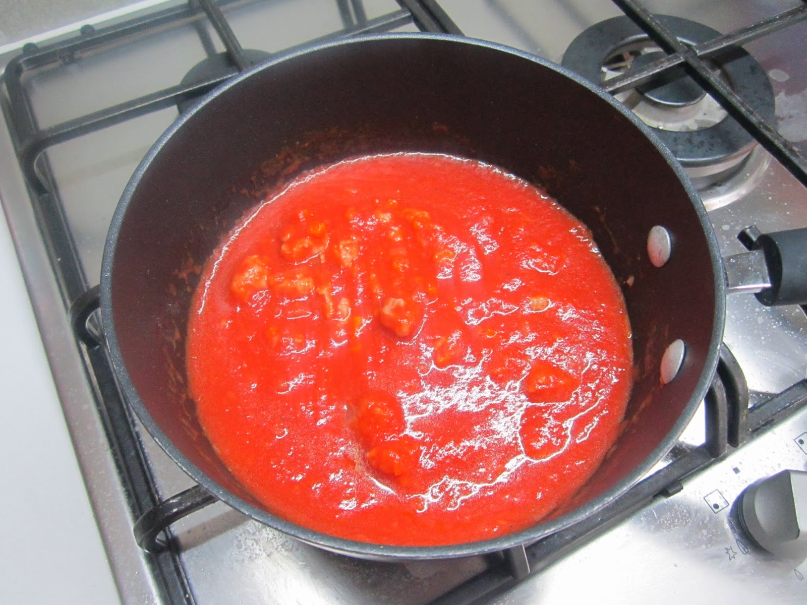 Unite la passata di pomodoro e fate cuocere a fiamma dolcissima per un ora. Salate e pepate.