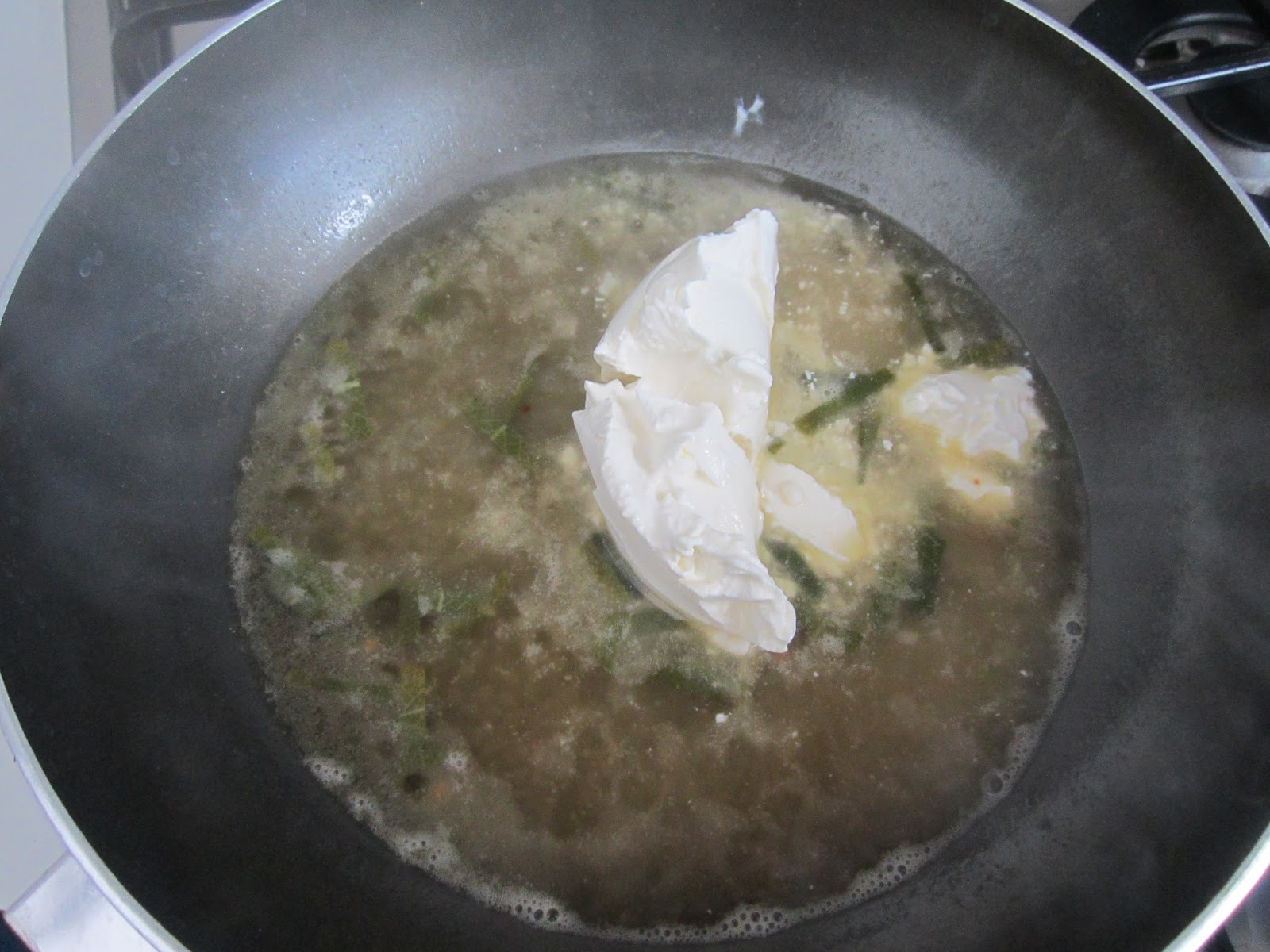 Aggiungete il brodo e fatelo sobbollire per cinque minuti.