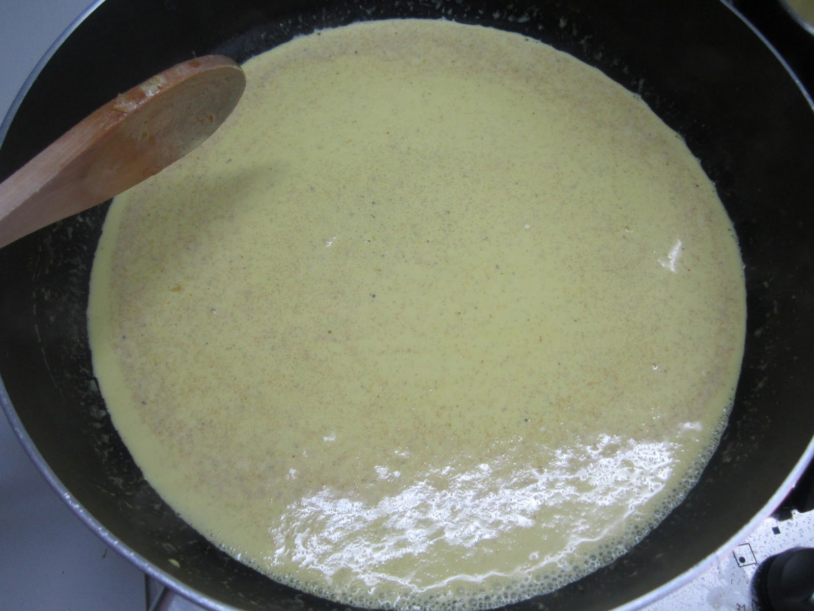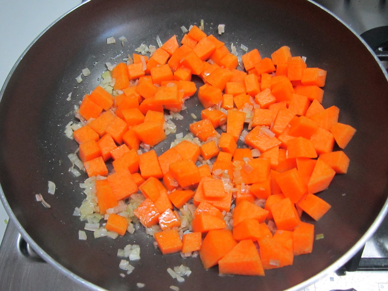 Sciogliete il curry in un po’ di acqua calda e poi fatelo scaldare in padella.