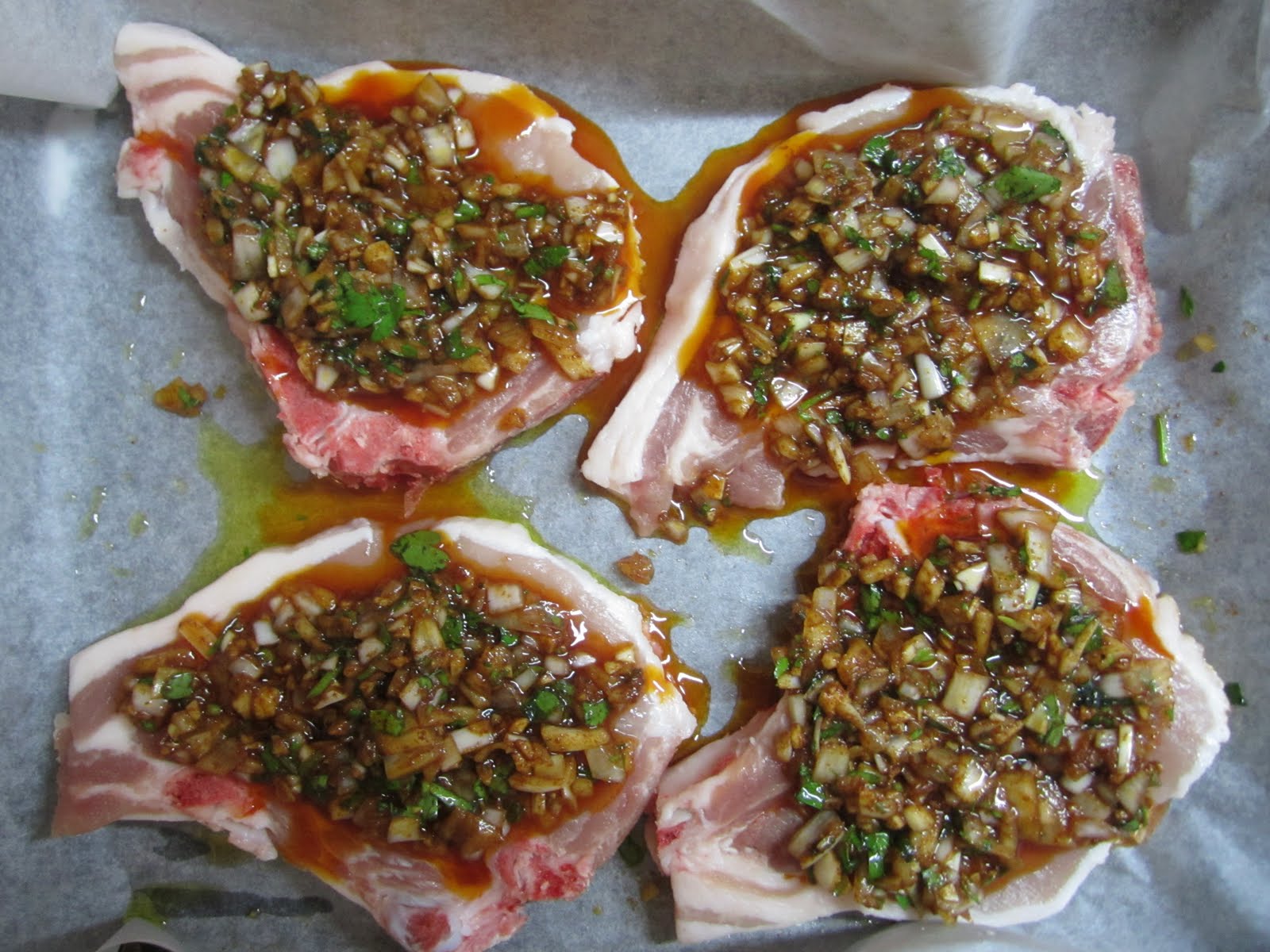 Per ora vi dovrete accontentare di questa ricetta spagnola. Le versione originale prevede l’uso delle costolette di maiale, ma io preferisco le braciole la cui carne, durante la cottura, diviene molto morbida e non si secca.