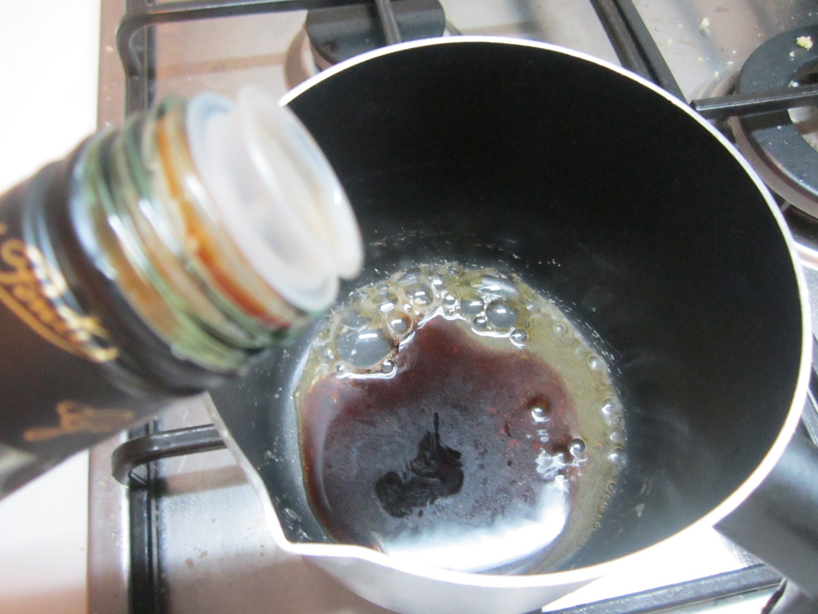 Unite poi l’aceto balsamico ed a fiamma bassa lasciate cuocere fino a quando non diventerà denso (questa è la salsa per condire la caponata).