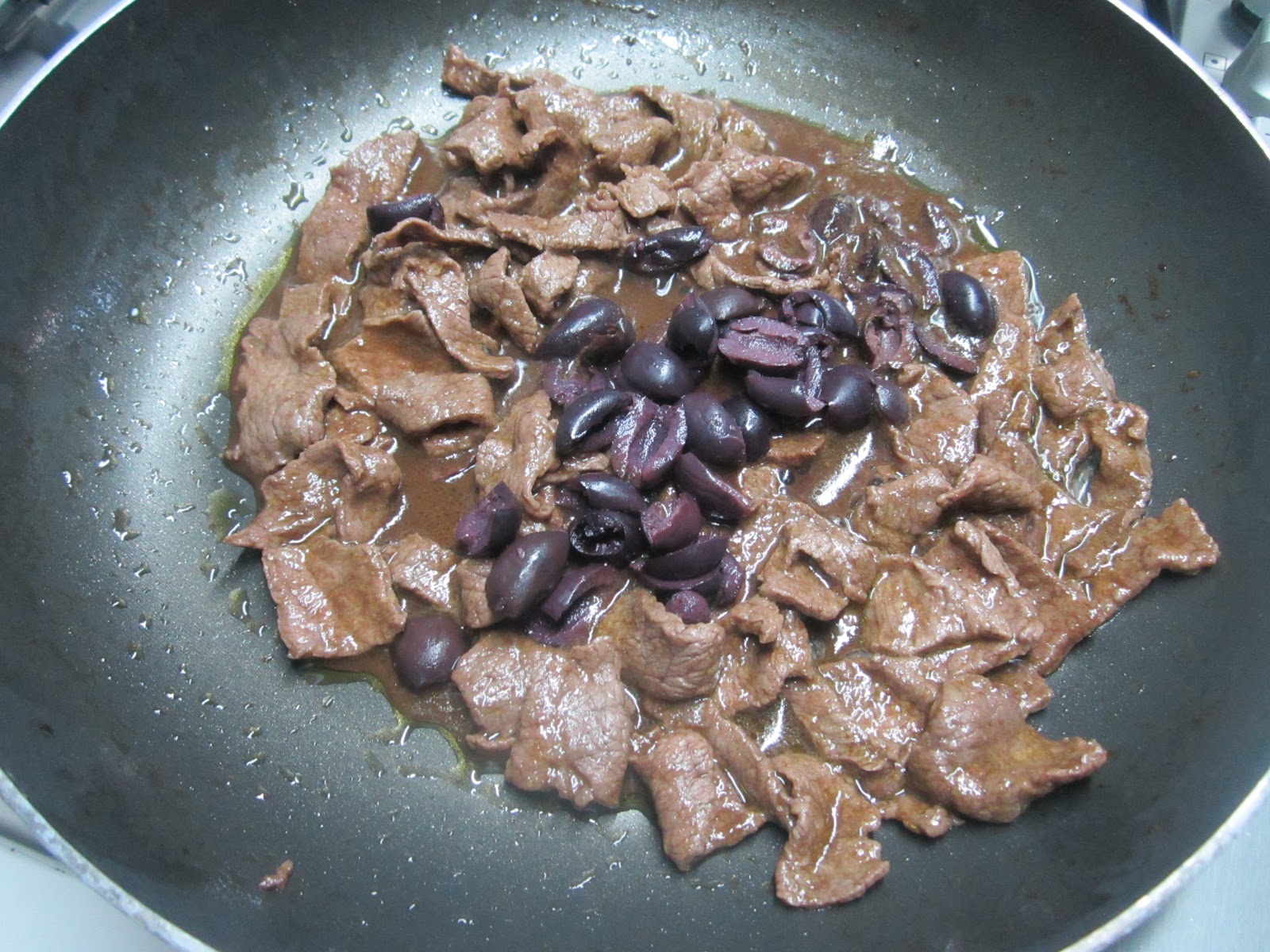 Gli straccetti sono forse la mia carne preferita! Mi piacciono in tutti i modi, con vino, limone, aceto e aceto balsamico, con verdure, infarinati e mi piacciono assai con le olive:D